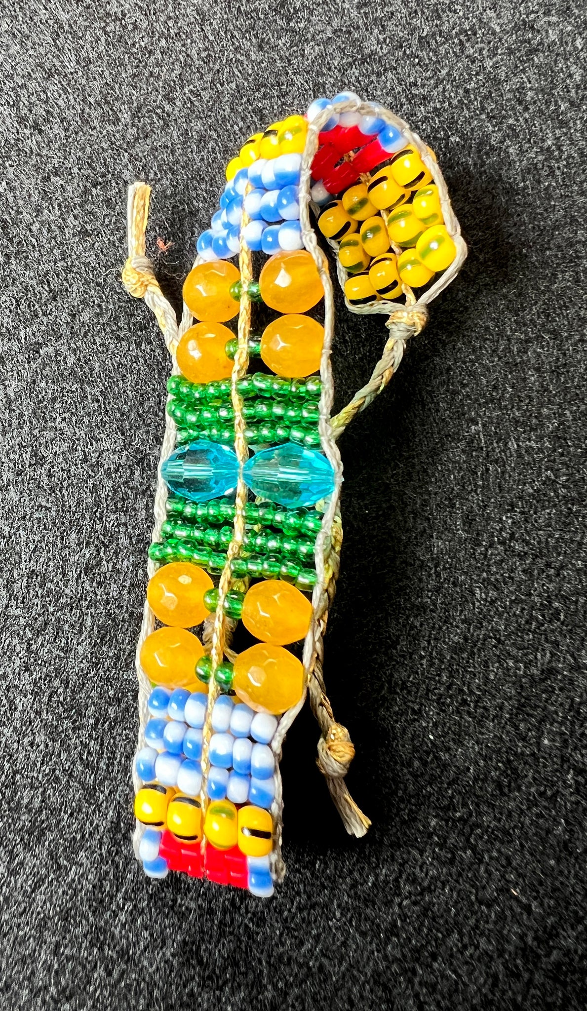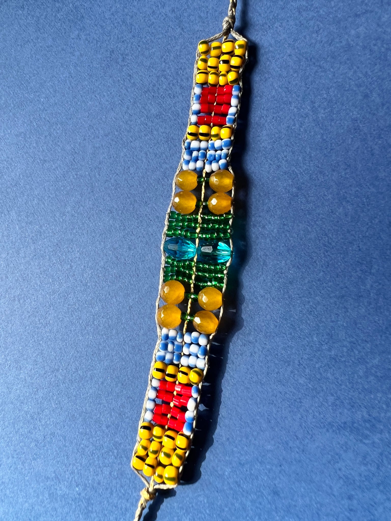 A joyful, one-of-a-kind handmade bracelet featuring an unexpected mix of colourful glass beads, sunny yellow agates and two radiant sky-blue crystals at its center. Bright, playful and full of personality, this bracelet brings a cheerful burst of colour that instantly lifts your mood. A wearable celebration of light and spontaneity.