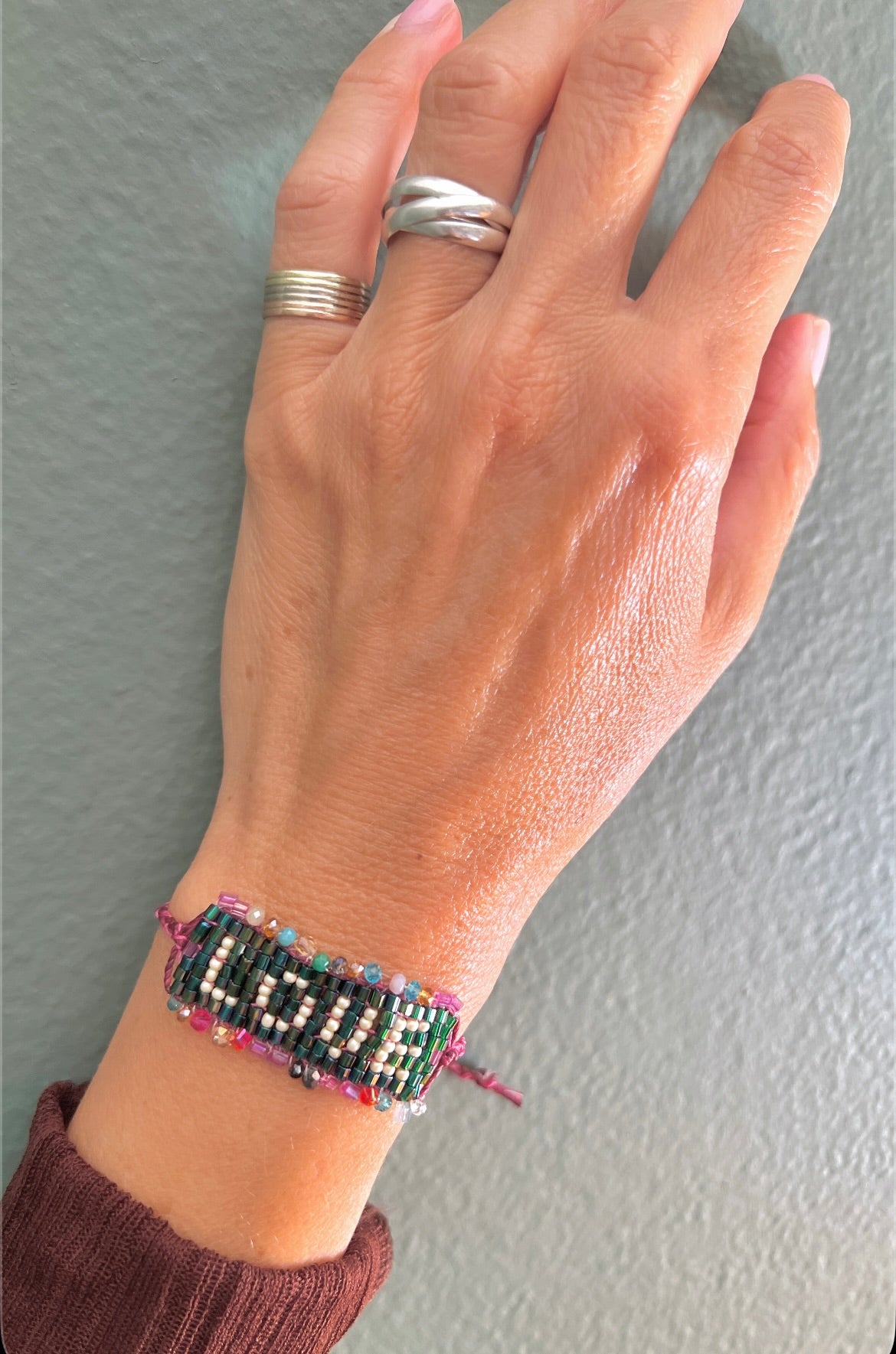Shine with LOVE! This elegant bracelet combines artisanal glass beads with a row of shimmering micro crystals. A perfect gift to someone special or as a luminous addition to your own collection.